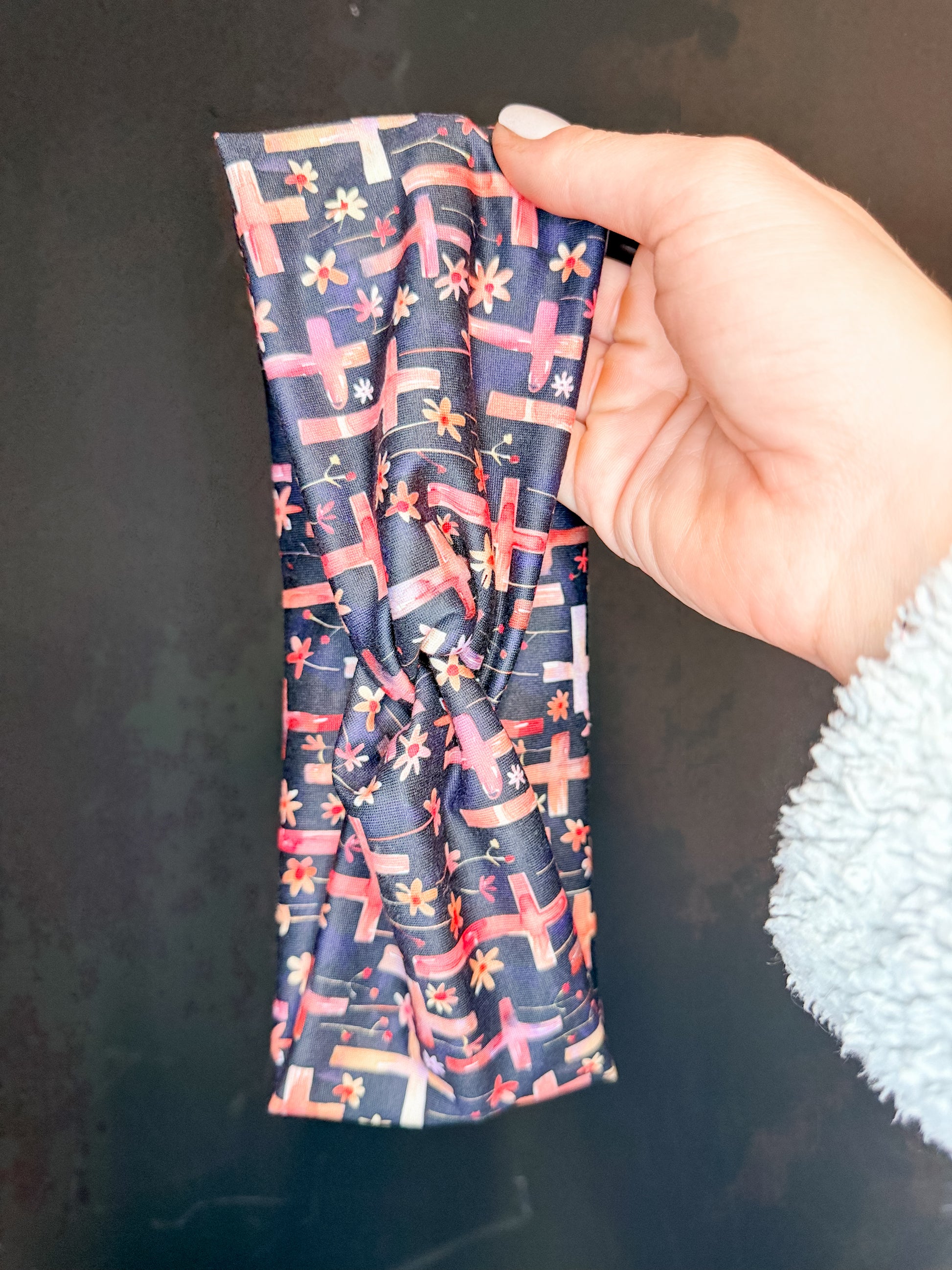 Floral Cross on Black Headband